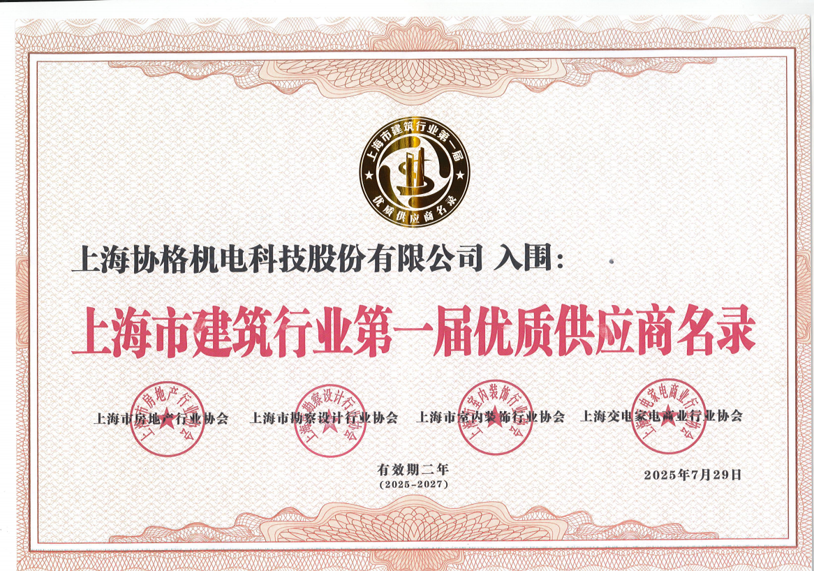 7月29日,上海市建筑行業(yè)第一屆優(yōu)質(zhì)供應(yīng)商名錄發(fā)布會暨全產(chǎn)業(yè)鏈對接大會圓滿召開。會上,《上海市建筑行業(yè)第一屆優(yōu)質(zhì)供應(yīng)商名錄》正式發(fā)布——這是上海建筑領(lǐng)域首個權(quán)威供應(yīng)商名錄。其中,上海協(xié)格機電科技股份有限公司憑借突出的技術(shù)實力與優(yōu)質(zhì)綠色能源解決方案成功入圍。